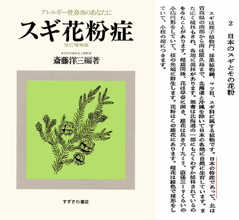 本文は、アレルギーと臨床26(2006年12月)に掲載された「中国産スギにより発症する日本人スギ花粉症症例」で、北海道苫小牧市のドクターヘリこと西本方宜先生のご協力を頂き、本論文を上梓することが出来ました。