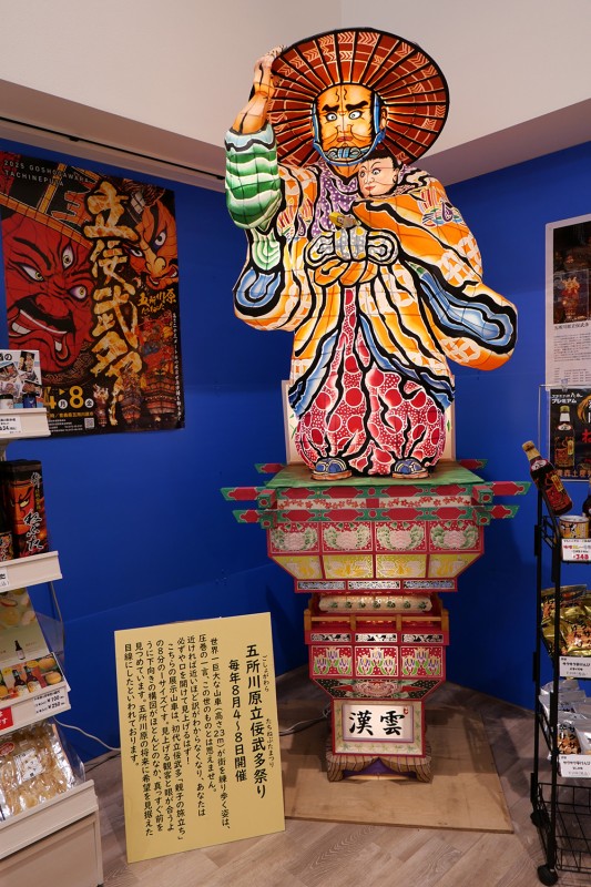 また、物産館の一角には全国的にも有名なねぶた(もしくは、ねぷた)祭りに用いられる灯篭人形(図15、16)が飾られていました。これらの灯篭人形を乗せた巨大なねぶた(図17、18)を見ようと、シーズンには県内外から多くの観光客が集まってきます。