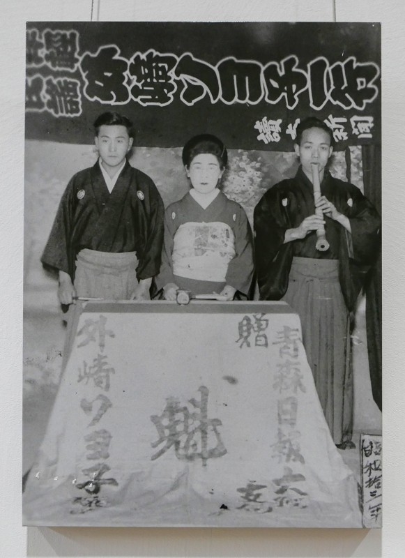楽器の名が示すように、津軽三味線の発祥は五所川原市にあります。その元祖は神原の仁太坊(秋元 仁太郎。図20)という弾き手で、あの独特の叩いて鳴らす奏法を生み出し、そこから津軽三味線の基礎が築かれていきました。