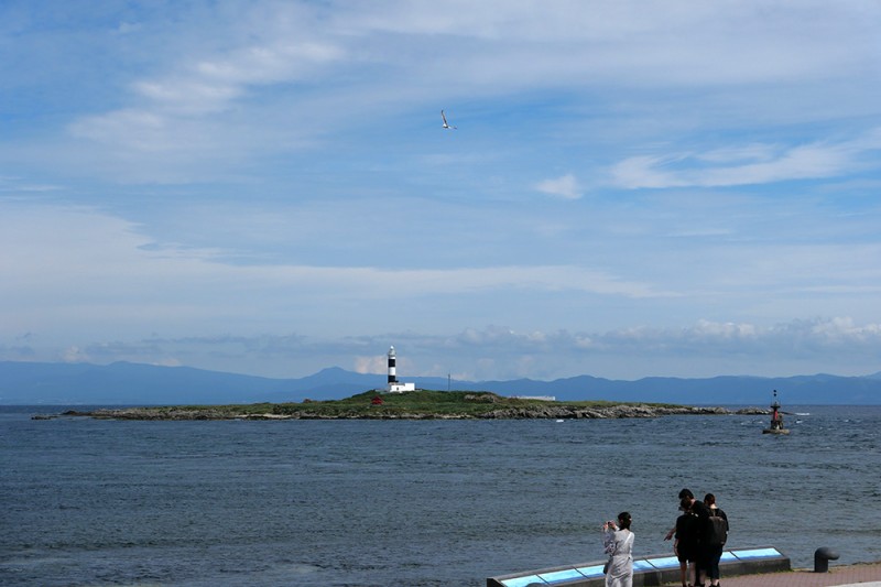 津軽海峡を臨む国道279号線を走っていると、大間のマグロで有名な大間町に辿り着きました。ここには本州最北である大間岬(図2)があり、対岸の函館汐首岬まではわずか17.5キロの距離しかありません。大気の状態が良ければ、ここから函館にある五稜郭タワーも見られるそうで、その地理的な近さが実感できます(図3、4)。