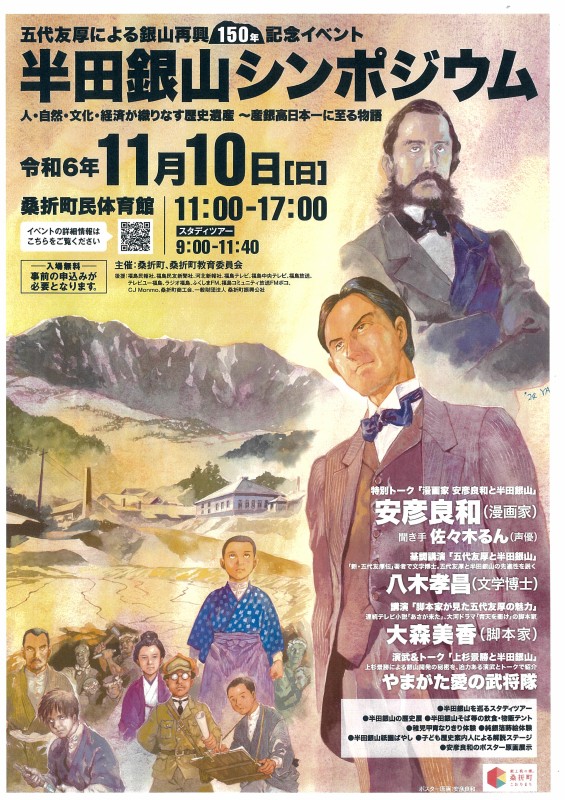 去る2024年11月10日(日)、福島県伊達郡桑折町にて、五代友厚による半田銀山再興150周年イベント“半田銀山シンポジウム”(図1)が開催されました。