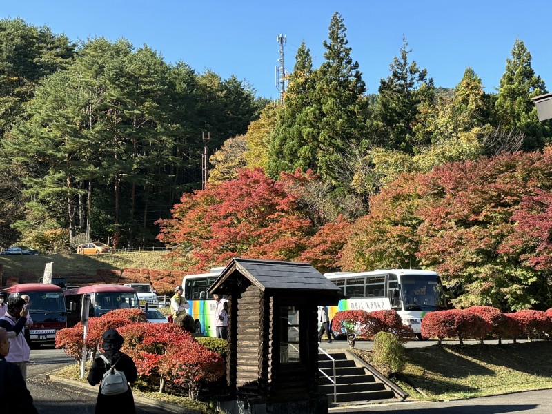 半田銀山史跡公園を一通り巡った後、一行を乗せたバスは紅葉がまだ残る半田山自然公園中腹にある当ツアーの一番の見所である半田銀山中鋪跡(図8)へ向かいます。