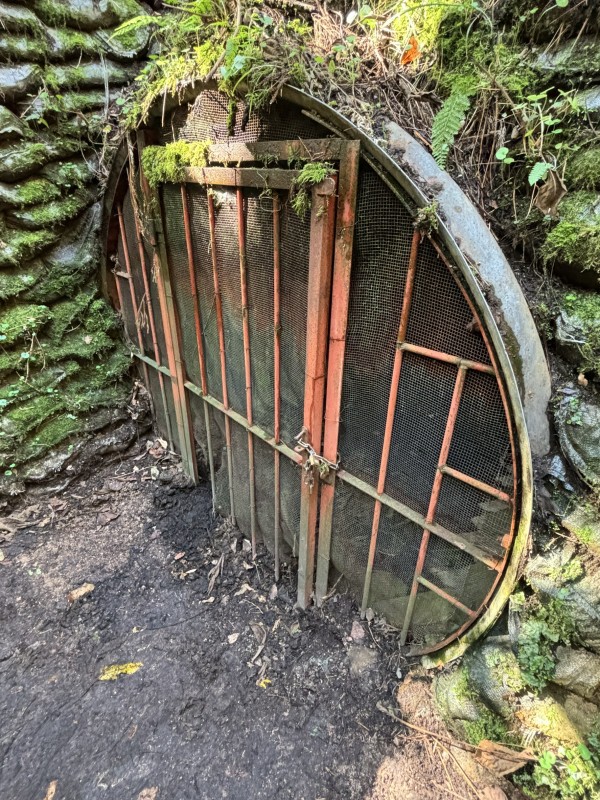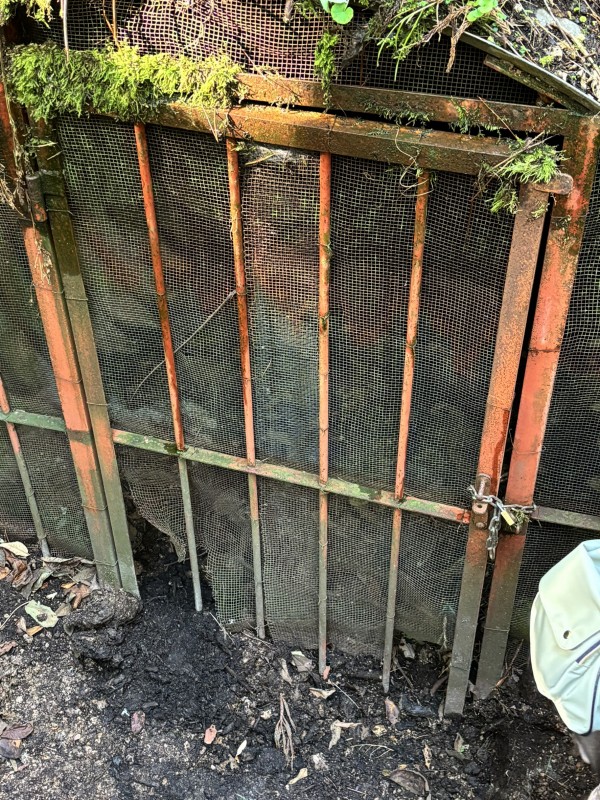 坑口には、厳重に鍵がかかっており網戸のようなネットが張られています(図11、12)。坑内は恐ろしい程に真っ暗闇で、奥をうかがい知ることは出来ませんでしたが、ここに辿り着くまでに、汗ばんだ私の身体に中から吹いてくる冷たい風が染みました。