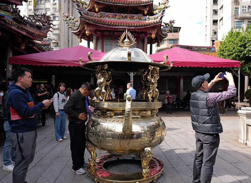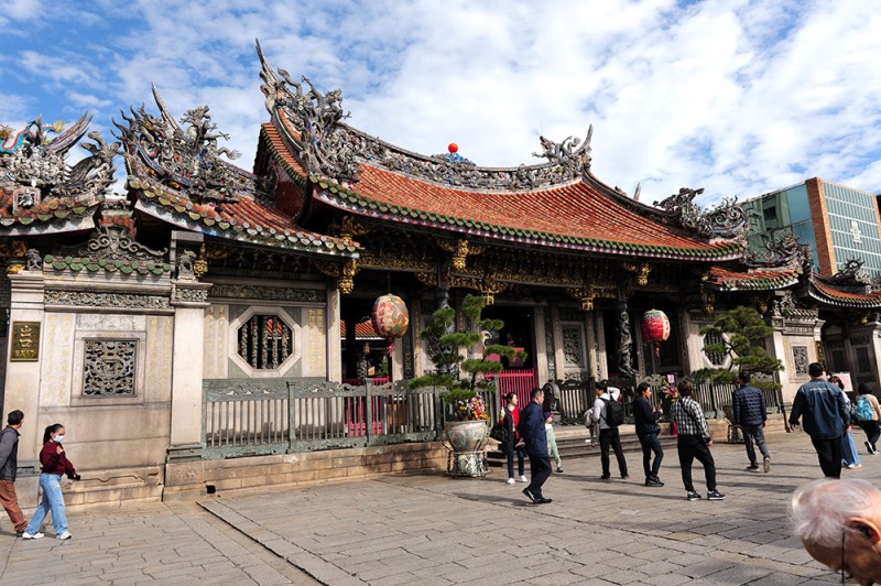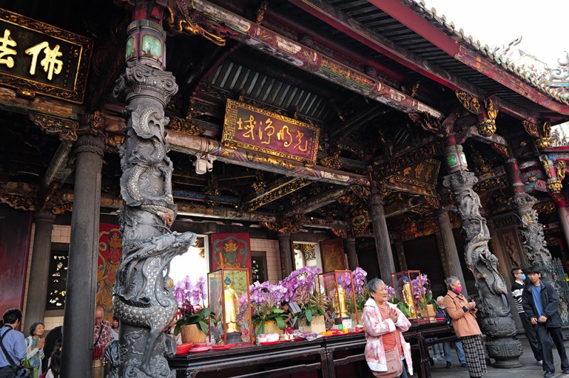 基隆港に寄港した私たちは、オプショナルツアーである台北観光に参加しました。この艋舺龍山寺(もうこうりゅうざんじ)は、1738年に福建省から渡来した人々によって創建された台北最古のお寺です。台北101、国立故宮博物院、中正紀念堂に並ぶ台湾四大観光名所の一つとして、多くの観光客が訪れています。