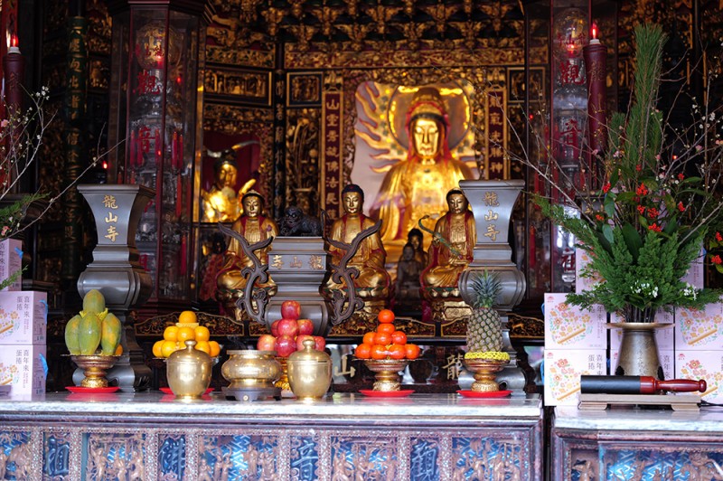 ご本尊は観世音菩薩ですが、道教や儒教などのさまざまな宗教が習合しており、境内には孔子や関帝(三国時代の蜀の猛将・関羽)、媽祖といった大小合わせて100以上の神々が祀られています(図16~25)。