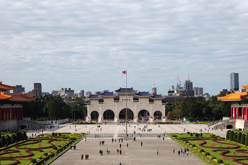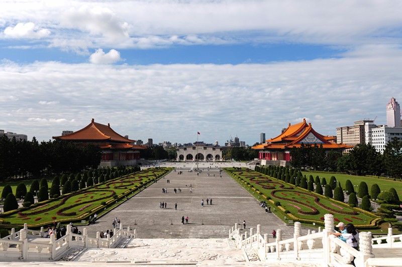 この施設は、台湾の初代総統である蒋介石の死去を悼むために建設されました。様式は中国の伝統的な宮殿陵墓式が採用され、喪に服した白と黒の色調の本堂は高さ70メートルにも及んでおり、その正面は西の中国大陸を臨むようになっています。